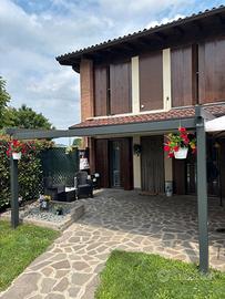 struttura in allumino verniciato grafite con pali da 120x120 mm addossata con telo in pvc bianco impermeabile 4mt x 4 mt profondità, smontaggio a cura acquirente- vendita per errata misura - come nuova - vero affare.........
