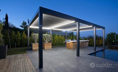 Pergola Bioclimatica in ALLUMINIO Grande qualità nuova imballata in kit di montaggio Ottimo gazebo fisso a lamelle, pompeiana importante, resistente, impermeabile Copertura che combina funzionalità ed estetica: PROTEZIONE-VENTILAZIONE-LUMINOSITA' PERGOLA BIOCLIMATICA DISPONIBILE IN 2 VERSIONI DI APERTURA LAMELLE: - MANUALE - MOTORIZZATA (CON TELECOMANDO E LED COLORATI) Materiale: ALLUMINIO Montanti struttura: 150x150mm Trave perimetrale pergola: altezza 200mm Altezza sottotrave : 230cm manuale - 250cm motorizzata Passo Lama: 20cm Carico Neve: 120 kg/mq Drenaggio Pioggia: 200mm/h Minuteria pergola bioclimatica tutta in acciaio INOX Doppia gronda con scarico dell'acqua alla base dei montanti della pergola (sempre 4 scarichi) Ricambi: sempre disponibili Pergola Bioclimatica MANUALE Mod. ORION autoportante o addossata (stesso prezzo) disponibile colore BIANCO in queste misure e prezzi: Hsottotrave pompeiana 230cm - 300X360 CM - E 3.650,00 - 360x360 CM - E 3.900,00 - 300x500 CM - E 4.700,00 (6 piantoni) - 360x500 CM - E 5.500,00 (6 piantoni) - 360x610 CM - E 6.300,00 (6 piantoni) - 360x720 CM - E 7.900,00 (6 piantoni) Pergola Bioclimatica MOTORIZZATA Mod. PEGASO di serie compreso LED RGB-TELECOMANDO- SENSORE PIOGGIA-COPRIPIASTRE autoportante o addossata (stesso prezzo) disponibile colore BIANCO O ANTRACITE in queste misure e prezzi: Hsottotrave pompeiana 250cm - 300X300 CM - E 4.450,00 - 300x400 CM - E 4.990,00 - 300x500 CM - E 5.890,00 - 300x600 CM - E 6.390,00 - 400x400 CM - E 5.800,00 - 400x500 CM - E 7.100,00 - 400x600 CM - E 7.390,00 - 400x800 CM - E 9.800,00 (6 piantoni) SHOW ROOM: visionabili sempre con appuntamento. MAGGIORI DETTAGLI sul ns SlT0 ufficiale: mondogazebo . it (sezione bioclimatiche) Prezzi pergola bioclimatica IVA22% COMPRESA, per ritiro in magazzino. Consegna pergola in tutta Italia a preventivo. Montaggio pompeiana semplice e veloce non richiede particolari competenze tecniche.