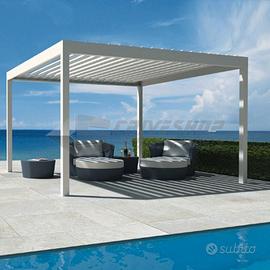 Pergola Bioclimatica in ALLUMINIO Grande qualità nuova imballata in kit di montaggio Ottimo gazebo fisso a lamelle, pompeiana importante, resistente, impermeabile Copertura che combina funzionalità ed estetica: PROTEZIONE-VENTILAZIONE-LUMINOSITA' PERGOLA BIOCLIMATICA DISPONIBILE IN 3 VERSIONI DI APERTURA LAMELLE: - MANUALE - MOTORIZZATA - MOTORIZZATA RETRATTILE Materiale: ALLUMINIO Montanti struttura: 150x150mm Trave perimetrale pergola: altezza 200mm Passo Lama: 20cm Carico Neve: 120 kg/mq Drenaggio Pioggia: 200mm/h Minuteria pergola bioclimatica tutta in acciaio INOX Doppia gronda con scarico dell'acqua alla base dei montanti della pergola (sempre 4 scarichi) Ricambi: sempre disponibili MANUALE Mod. ORION autoportante o addossata (stesso prezzo) colore BIANCO : Hsottotrave pompeiana 230cm 3,6x3,6 M - E 2.600 3x5 M - E 2.950 (6 piantoni) 3,6x5 M - E 3.500 (6 piantoni) 3,6x6,1 M - E 3.950 (6 piantoni) MOTORIZZATA Mod. PEGASO di serie compreso LED RGB-TELECOMANDO- SENSORE PIOGGIA-COPRIPIASTRE autoportante o addossata (stesso prezzo) disponibile colore: BIANCO ANTRACITE VERDE SALVIA MARRONE CORTEN: Hsottotrave pompeiana 250cm (a richiesta 280cm) 3x3 M - E 3.990 3x4 M - E 4.350 3x5 M - E 5.890 3x6 M - E 6.390 4x4 M - E 5.200 4x5 M - E 7.100 4x6 M - E 7.390 4x8 M - E 8.800 (6 piantoni) MOTORIZZATA RETRATTILE Mod. SYMPHONIA di serie compreso LED RGB-TELECOMANDO- SENSORE PIOGGIA-COPRIPIASTRE autoportante disponibile colore BIANCO - ANTRACITE: Hsottotrave pompeiana 250cm 3x3 E 6.600 3x5 E 9.500 3x6 E 10.600 4x5 E 10.800 4x6 E 12.200 4x8 E 17.900 (6 piantoni - doppio tetto) CHI SIAMO: Mondo Gazebo. lT PRIMI IN ITALIA PER LA VENDITA DI PERGOLE DI QUALITA' SHOW ROOM: visionabili sempre con appuntamento. Prezzi IVA22% COMPRESA, per ritiro in magazzino. Consegna pergola in tutta Italia a preventivo. Montaggio pompeiana semplice e veloce non richiede particolari competenze tecniche. Bioclimatica pergola 3 4 5 6 7 8 M gazebo tettoia box pensilina pompeiana
