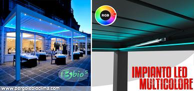 La bioclimatica BioS è la nuova pergola di gamma superiore con motorizzazione e controllo remoto di serie e impianto LED integrato.