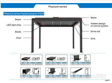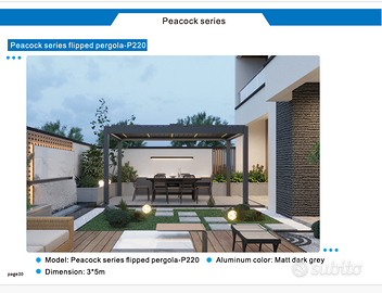 Pergola bioclimatica 4x5 mt.pale da 22 cm.molto robusta , colore grigio chiaro ,nuova imballo 10 cartoni ,completa di motore pale e luci led gestione con app, facile da montare con video e manuale per montaggio.