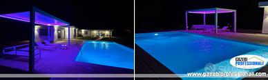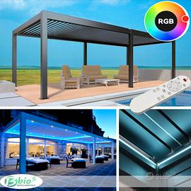 La bioclimatica BioS è la nuova pergola di gamma superiore con motorizzazione e controllo remoto di serie e impianto LED integrato.