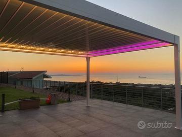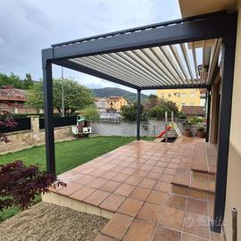 Bellissima pergola bioclimatica autoportante (NS. MOD. LUCIA) costituita da una struttura in alluminio con lame parallele facilmente regolabili grazie a un sistema motorizzato silenzioso incluso nel prezzo