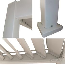 PERGOLA BIOCLIMATICA Copertura a lamelle frangisole orientabili Mod. COSMOS by Mondo Gazebo . Gazebo , nuovo, imballato, in kit di montaggio. Disponibile nella versione COSMOS PLUS - gambe da 11x11 cm - spessori di piastre, telaio e lamelle maggiorati - Hsottotrave 232cm - ferramenta acciaio INOX) Colore bianco o antracite Telaio del gazebo in alluminio Lamelle in acciaio zincato Verniciatura a polveri Trave perimetrale del gazebo altezza 140 mm Tasselli inox per ancoraggio a terra della pergola bioclimatica già forniti Apertura e regolazione lamelle della pergola bioclimatica : manuale, con arganello (2 giri senza sforzo: eseguita rotazione di 90°) Doppia gronda strutturale con scarico dell'acqua alla base dei montanti del gazebo (sempre 4 scarichi). Passo Lama pergolato di copertura : 17cm COSMOS PLUS: - 300x300 CM - Euro 1.250,00 - 300x400 CM - Euro 1.590,00. Prezzo della copertura professionale valido solo per il ritiro in magazzino con adeguato mezzo. Consegna della pergola bioclimatica con spedizioniere in tutta Italia a preventivo. copertura che combina funzionalità ed estetica: PROTEZIONE - VENTILAZIONE - LUMINOSITA'. Pergola frangisole autoportante con telaio totalmente in alluminio a lamelle orientabili con meccanismo manuale. Montaggio pergola semplice e veloce, non necessita di particolari competenze tecniche fornito per il montaggio fai da te. SALA MOSTRA: Il prodotto è visionabile, sempre su appuntamento da confermarsi telefonicamente. CHI SIAMO: Mondo Gazebo il riferimento italiano per la fornitura di qualità di qualsiasi struttura temporanea mobile GAZEBO SERRA CASETTA LEGNO CAPANNONE TENDONE PER FESTE COPERTURA VEICOLI POMPEIANA VERANDA