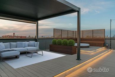 La nostra Pergola Bioclimatica è quella che stai cercando. Bella, sicura, certificata, con tutti i confort, al giusto prezzo. Il telecomando di serie regola: Apertura delle lamelle MOTORIZZATA Illuminazione a LED bianchi o RGB colorati, di serie. Disponibile nelle seguenti misure: con 4 gambe: 3x3 - 3x4m - 3x6m 4x4m - 4x6m con 6 gambe: 4x8m con sistema di raccolta dell'acqua piovana nelle travi perimetrali e scarico integrato nei montanti verticali nelle versioni di colore della verniciatura a polveri: - Bianco - Antracite Altri dettagli: - Tutta in Alluminio - Montanti verticali da 15x15 cm - Travi da 13x20 cm - lamelle spess. 3,8 cm TEST PRESTAZIONI: - Vento fino a 120 km/h - Neve 80 kg/mq per versione base - Neve 120 kg/mq (versione SNOW ). SPEDIZIONE GAZEBO Possibile a tutta Italia, costo a preventivo. APPLICAZIONE IVA La pergola è soggetta a divese applicazioni del valore aggiunto a seconda del titolo edilizio: Nuova costruzione 4% Ristrutturazione 10% Altri 22% Prezzo esposto imponibile riferito alla misura 3x4 mt. Per prezzi altre misure, e costo trasporto, disponibili a fornire info solo telefonicamente a voce. no messaggini.