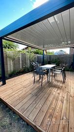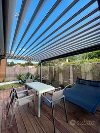La struttura in alluminio conferisce solidità e durata, mentre il sistema di scarico dell'acqua integrato e invisibile rende la pergola ancora più sofisticata, senza compromettere l'estetica. Questa soluzione è ideale per chi cerca una struttura moderna e discreta, che si integri perfettamente con l’ambiente circostante.