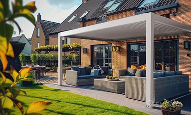 PERGOLA BIOCLIMATICA DISPONIBILE IN 2 VERSIONI DI APERTURA LAMELLE: