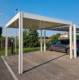 Pergola bioclimatica a lamelle orientabili fino a 90 gradi motorizzate.