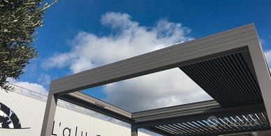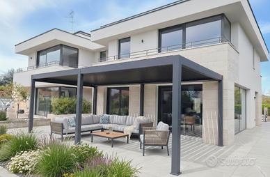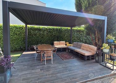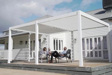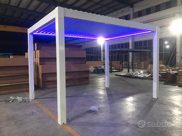 Pergola Bioclimatica in ALLUMINIO Grande qualità nuova imballata in kit di montaggio Ottimo gazebo fisso a lamelle, pompeiana importante, resistente, impermeabile Copertura che combina funzionalità ed estetica: PROTEZIONE-VENTILAZIONE-LUMINOSITA' PERGOLA BIOCLIMATICA DISPONIBILE IN 2 VERSIONI DI APERTURA LAMELLE: - MANUALE - MOTORIZZATA (CON TELECOMANDO E LED COLORATI) Materiale: ALLUMINIO Montanti struttura: 150x150mm Trave perimetrale pergola: altezza 200mm Altezza sottotrave : 230cm manuale - 250cm motorizzata Passo Lama: 20cm Carico Neve: 120 kg/mq Drenaggio Pioggia: 200mm/h Minuteria pergola bioclimatica tutta in acciaio INOX Doppia gronda con scarico dell'acqua alla base dei montanti della pergola (sempre 4 scarichi) Ricambi: sempre disponibili Pergola Bioclimatica MANUALE Mod. ORION autoportante o addossata (stesso prezzo) disponibile colore BIANCO in queste misure e prezzi: Hsottotrave pompeiana 230cm - 360x360 CM - E 3.400,00 Pergola Bioclimatica MOTORIZZATA Mod. PEGASO di serie compreso LED RGB-TELECOMANDO- SENSORE PIOGGIA-COPRIPIASTRE autoportante o addossata (stesso prezzo) disponibile colore BIANCO ANTRACITE MARRONE CORTEN VERDE SALVIA in queste misure e prezzi: Hsottotrave pompeiana 252cm - 300X300 CM - E 3.990,00 - 300x400 CM - E 4.350,00 - 300x500 CM - E 5.890,00 - 300x600 CM - E 6.390,00 - 400x400 CM - E 5.400,00 - 400x500 CM - E 7.100,00 - 400x600 CM - E 7.390,00 - 400x800 CM - E 8.900,00 (6 piantoni) MOTORIZZATA RETRATTILE Mod. SYMPHONIA di serie compreso LED RGB-TELECOMANDO- SENSORE PIOGGIA-COPRIPIASTRE autoportante disponibile colore BIANCO - ANTRACITE: Hsottotrave pompeiana 250cm 3x3 E 6.600 3x5 E 9.500 3x6 E 10.600 4x5 E 10.800 4x6 E 12.200 4x8 E 17.900 (6 piantoni - doppio tetto) CHI SIAMO: Mondo Gazebo. lT PRIMI IN ITALIA PER LA VENDITA DI PERGOLE DI QUALITA' SHOW ROOM: visionabili sempre con appuntamento. Prezzi IVA22% COMPRESA, per ritiro in magazzino. Consegna pergola in tutta Italia a preventivo.