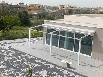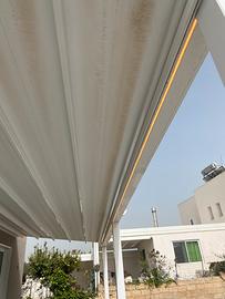 Pergola come nuova mai utilizzata , istallata e non ancora utilizzata . Vendo per cambio progetto . Dimensioni : 8 metri x 3,20 metri La pergola R140 Pergosmall di BT è una struttura da esterno costruita interamente in alluminio e ideale per tutte le tipologie di outdoor, sia arredati in modo classico che moderno. Si tratta di un modello che valorizza ogni spazio esterno, trasformandolo in una suggestiva location per feste, incontri e momenti di relax. È caratterizzata da un sistema di trazione con cinghia dentata ad alta resistenza, funzionante su cuscinetti a sfere e carrelli molto silenziosi. Per quanto riguarda il funzionamento è esclusivamente a motore, con comando radio. La copertura mobile, a telo unico, in tessuto PVC ignifugo offre un’ottima stabilità dimensionale ed è in grado di proteggere dal sole, dalla pioggia e dal vento. All’interno della struttura è integrata anche la gronda per lo scarico dell’acqua piovana. E come optional luce a led integrata con comando radio .