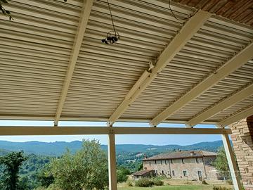 Causa trasferimento, vendo bellissima pergola addossata in alluminio verniciato color bianco con lamelle orientabili, si può tenere chiusa e rimane una tettoia altrimenti per avere più luce si possono aprire le lamelle con telecomando. Dotata anche di luci LED. Le misure sono circa 7 mt. X 3 mt. Per altre informazioni più dettagliate o per visionarla non esitate a contattarmi. Prezzo trattabile.