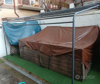 colore antracite in ferro zincato misure circa 4×circa 3 comprata nel 2025 tessuto tenda impermeabile colore grigio perfettamente funzionante e funzionale la svendo per ampliamento spazi e purtroppo nn mi è più sufficiente come misura no perdita di tempo grazie ritiro Roma zona bufalotta già smontata con numerazione su tubi per il montaggio semplice no è trattabile il prezzo scrivete solo se interessati per cortesia grazie