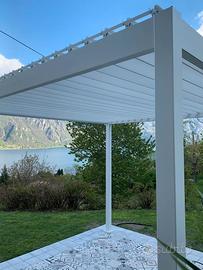 Pergola frangisole autoportante con telaio totalmente in alluminio a lamelle orientabili con meccanismo manuale.