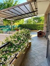 Pergola da giardino con struttura in ferro e copertura in PVC. Resistente al sole ed alla pioggia. Larghezza centimetri 450 e profondità 340 centimetri circa. Altezza dei piedi (interrati in vaso) 210 cm e inclinazione circa 15gradi. Costruita da un artigiano, robusta ed elegante, struttura in buone condizioni da riverniciare , copertura in PVC in discrete condizioni. Parzialmente smontabile. Ritiro a carico del compratore.