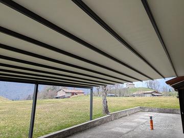 vendo pergola praticamente nuova, acquistata nuova 10 mesi fa, perfetta, svolgimento elettrico, tetto di ricovero per telo quando chiuso, telo in PVC antiacqua, misure 8 X 5.5 mt