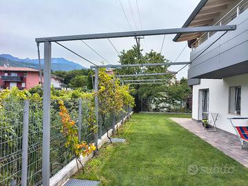 vendo pergola usata (è stata installata meno di 1 Anna fa) ma in ottime condizioni, struttura in ferro zincato e verniciato RAL 7037, possibilità di inclinare a piacimento con sistema a filetto. tiranti in acciaio e 3 barre di ferro per tenere la distanza fra pali e stabilità su tutta la lunghezza. i pali sono fissati a muro con delle staffe e con dei perni sulla stessa. l'unico punto che sarà in po' sporco è quello (tanto andranno sempre sotto terra immagino).