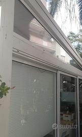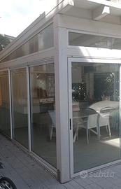 Misure 4.40 x 4.40 mt comprese vetrate scorrevoli sui 4 lati con chiusura bloccante, inoltre sulle vetrate di un lato con serratura. Vendo per inutilizzo e cambio ingresso abitazione.