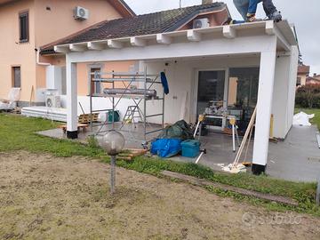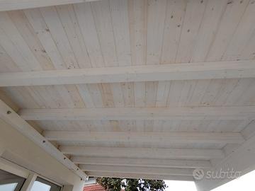 Pergola di legno lamellare colore bianco, copertura con perlina e pannello sandwich. Qualsiasi dimensione con posa.
