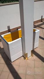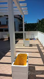 Pergolato in legno lamellare dimensioni mt. 4.00x4.00, pilastro cm. 10*16, trave portante cm. 10*20, travicelli sez, cm. 10*12. Da posizionare su terrazzo con fioriera che funge da zavorra. Compreso trasporto e montaggio nel raggio di km. 70. Possibilità di colorazione noce.