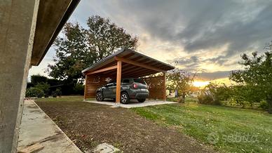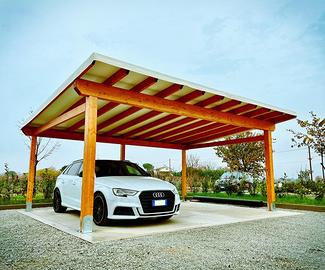 Struttura completa in legno lamellare di alta qualità, progettata per resistere a condizioni climatiche avverse come neve e vento forte. Copertura con telo in PVC resistente, trattato per garantire protezione e durata. Il legno è trattato con prodotti a base d’acqua per una lunga durata e resistenza agli agenti atmosferici.