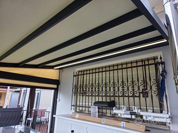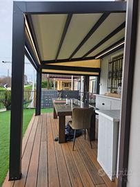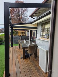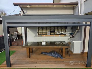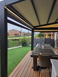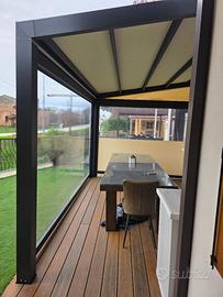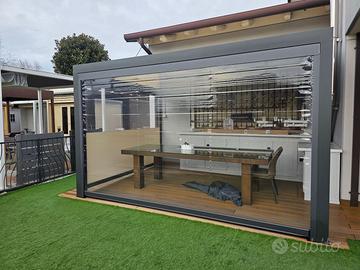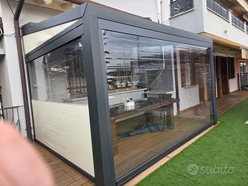 • Dotata di due tende laterali: una interamente in PVC cristal e una parzialmente