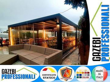 Possibile inserire dei teli laterali fissi o scorrevoli con o senza finestre.