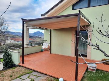 Vendo una pergola con tenda addossata da un lato, compatta e modulare, dallo stile moderno e con una estetica di grande valore, pensata per vivere gli ambienti esterni in un'atmosfera estremamente piacevole.