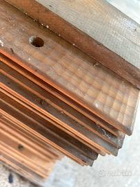Vendo 34 perline piallate a mano rimosse da soffitto di circa 20 mq. Hanno Larghezze diverse per creare un gioco di movimento e sono numerate per essere incastrate con precisione e riproporre la stessa geometria. Ritiro in zona.