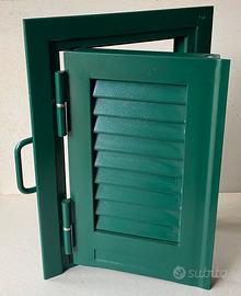 Persiana in alluminio marcata SIFA, con alette regolabili, colore verde, misure 40x58, kg.3,7. Condizioni: come nuova, potrebbe essere definita NUOVA in quanto facente parte di un campionario e mai montata.
