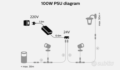 •Potenza massima: 100 W totali (supporta più lampade Hue da esterno fino a raggiungere questa soglia)