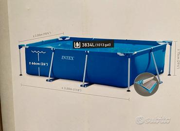 Vendo piscina Intex 3x2 h70 . Buono stato generale . Nel blocco presente pompa filtrante intex e telo copripiscina acquistato a luglio 2025 . Tutto perfettanente in ordine e ben tenuto . Disponile alla visione. Prezzo non trattabile e lotto non divisibile.