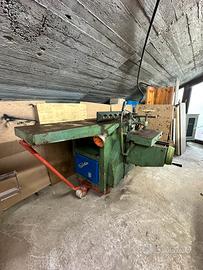 Pialla combinata, perfettamente funzionante, con motore 380 tutta in ghisa, n.3 lame larghezza 39 cm, più banco esterno per scorniciare. Regalo altre 3 lame + frese. No perditempo