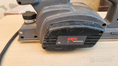 Causa inutilizzo, vendo pialla elettrica Skil professional, l'oggetto è stato usato poche volte, presenta qualche graffio a livello estetico, dovuto al contatto con altri utensili nell'armadio dov'era riposto, funziona perfettamente. Come si può vedere dalle foto, a causa di un urto dovuto ad un utensile che gli avevo appoggiato sopra, manca una piccola porzione di plastica nel condotto di uscita dei trucioli, lo segnalo per correttezza, ma è del tutto ininfluente nel regolare utilizzo.
