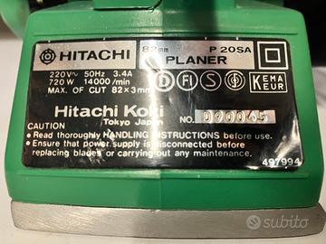 pialla hitachi p20sa, funzionante; pialla ma le lame un po’ usurate sono da affilare o sostituire (acquistabili su internet a 12€); solo quello che vedete in foto, non ho altri accessori