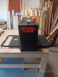 Struttura in metallo, corpo macchina con rulli di trascinamento automatici, manopole di regolazione coltelli, piani regolabili, corpo aspirazione trucioli integrato, variatore a 2 velocità, cartone originale di imballo.