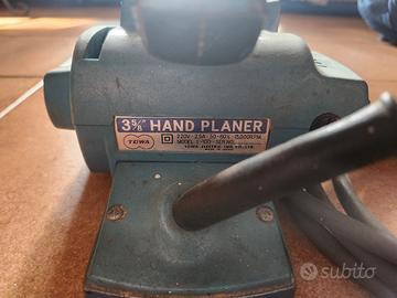 Pialla elettrica vintage 'Towa Hand Planer', 3⅝" L-100 220V. Buone condizioni, è presente del nastro adesivo sul filo di alimentazione.