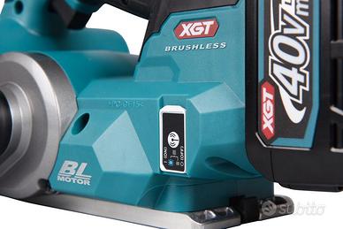 40Vmax • 82mm • 15.000 g/minPialla a batteria XGT® 82mm 40Vmax BL-AWS-BRAKE-fornita senza batterie, caricabatterie in MakpacPialla 40Vmax BLmotor ad alte prestazioni, ideale per lavorazioni di piallatura di travi e pannelli di legno. L'espulsione dei trucioli da entrambi i lati (dx-sx), la base anteriore con 3 scanalature di smussatura permettono di adattarsi alle esigenze dell'operatore. Piede posizionato sulla base permette di non rovinare la base. Macchina + Valigia
