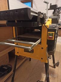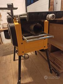 Piallatrice Dewalt a filo e spessore , battuta regolabile, bocchettone per aspirazione, spingi pezzo, gambe di supporto con ruote.
