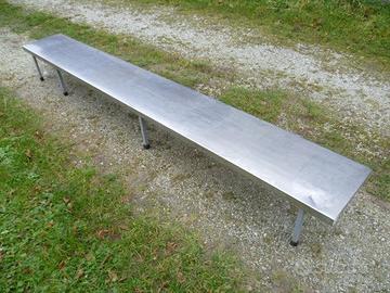 Vendo robusto piano in acciaio inox, dalle seguenti dimensioni lunghezza m. 3,1 larghezza cm. 40 spessore cm. 4,5.