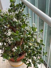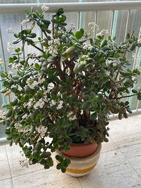 La Crassula ovata è una pianta molto decorativa, perfetta per rendere accogliente un ingresso o un soggiorno. A differenza delle piccole piante grasse, la Crassula ha un'incredibile capacità di crescita. Se volete che si propaghi sana e rigogliosa dovete scegliere un vaso ampio e rinvasarla quando necessario. I più pazienti possono propagarla facilmente anche per talea! Essendo un specie originaria dell'emisfero australe, se posta nelle giuste condizioni ambientali, la fioritura avverrà in inverno, in caso contrario avverrà in genere a cavallo tra la stagione primaverile e quella estiva. I fiori sono a forma di stella, raggruppati in infiorescenze che si svilupperanno agli apici dei rami, secondo uno schema a corimbo.