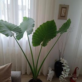 Alocasia e una bellissima pianta che fa anche da arredo.