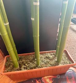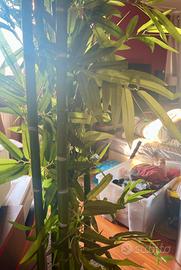 Pianta bambù artificiale realistica da interno in perfette condizioni. Può essere usata come un “muretto”. Altezza 210cm circa, larghezza 46 cm.
