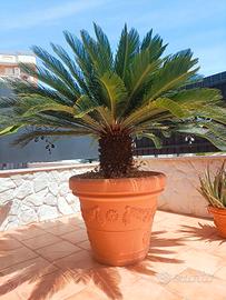 Stupendo esemplare di Cycas Revoluta di circa 15 anni, comprensivo di bellissimo vaso in resina indeformabile. Tenuto e curato benissimo, terriccio e concime di ottima qualità. Come si evince dall'ultima foto, sta emettendo un nuovo gettito di fogliame come fa ogni anno. Vendo perché ormai troppo grande per lo spazio a disposizione. Possibilità di consegna a domicilio nelle zone limitrofe da concordare e preventivare. Prezzo leggermente trattabile.