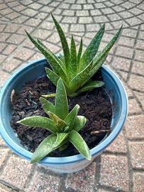 Pianta da esterno, sono almeno 2 piante per vaso, aloe vera, aloe aristata,e 2 piante succulente del Messico, che in primavera hanno fiori gialli e bianchi. Su richiesta mando altre foto delle piante madre, da vedere come diventano.