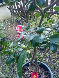 Pianta di camelia alta 170 cm con vaso, ottima per essere messa in terra, fiori grandi rossi .