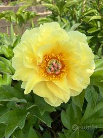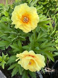 La Peonia Itoh ‘Bartzella’ è una delle varietà più celebri e premiate tra le peonie ibride intersezionali, capace di unire la robustezza delle peonie arbustive con la generosità delle erbacee. I suoi grandi fiori doppi, di un intenso giallo limone con sfumature dorate e delicate pennellate rossastre alla base dei petali, sbocciano in primavera tra fine marzo ed aprile e diffondono un profumo dolce e gradevole con note di limone che conquista al primo incontro.
