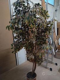 Pianta ornamentale finta con vaso in terracotta e struttura in legno. Le foglie sono in plastica molto realistiche
