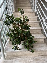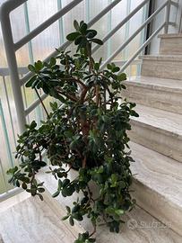 Dimensioni pianta h. 85 cm. Da terra . Diametro cm 60 circa. La Crassula ovata è una pianta molto decorativa, perfetta per rendere accogliente un ingresso o un soggiorno. A differenza delle piccole piante grasse, la Crassula ha un'incredibile capacità di crescita. Se volete che si propaghi sana e rigogliosa dovete scegliere un vaso ampio e rinvasarla quando necessario. I più pazienti possono propagarla facilmente anche per talea! Essendo un specie originaria dell'emisfero australe, se posta nelle giuste condizioni ambientali, la fioritura avverrà in inverno, in caso contrario avverrà in genere a cavallo tra la stagione primaverile e quella estiva. I fiori sono a forma di stella, raggruppati in infiorescenze che si svilupperanno agli apici dei rami, secondo uno schema a corimbo. No sottovaso. No spedizione. Solo ritiro presso il mio domicilio.