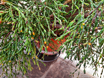 Pianta grassa in vaso, circa 37 anni. Da marzo/aprile fino a novembre all'esterno, in inverno al riparo. La fioritura si manifesta con dei germogli gialli, come da foto.