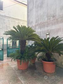 Vendo per sgombero appartamento n.3 cycas in ottimo stato, sempre avute in vaso come foto. Entrambe attualmente hanno il vaso già personale, la più grande supera i 2 mt di altezza con una vita di 25 anni circa mentre le altre due qualcosina meno.